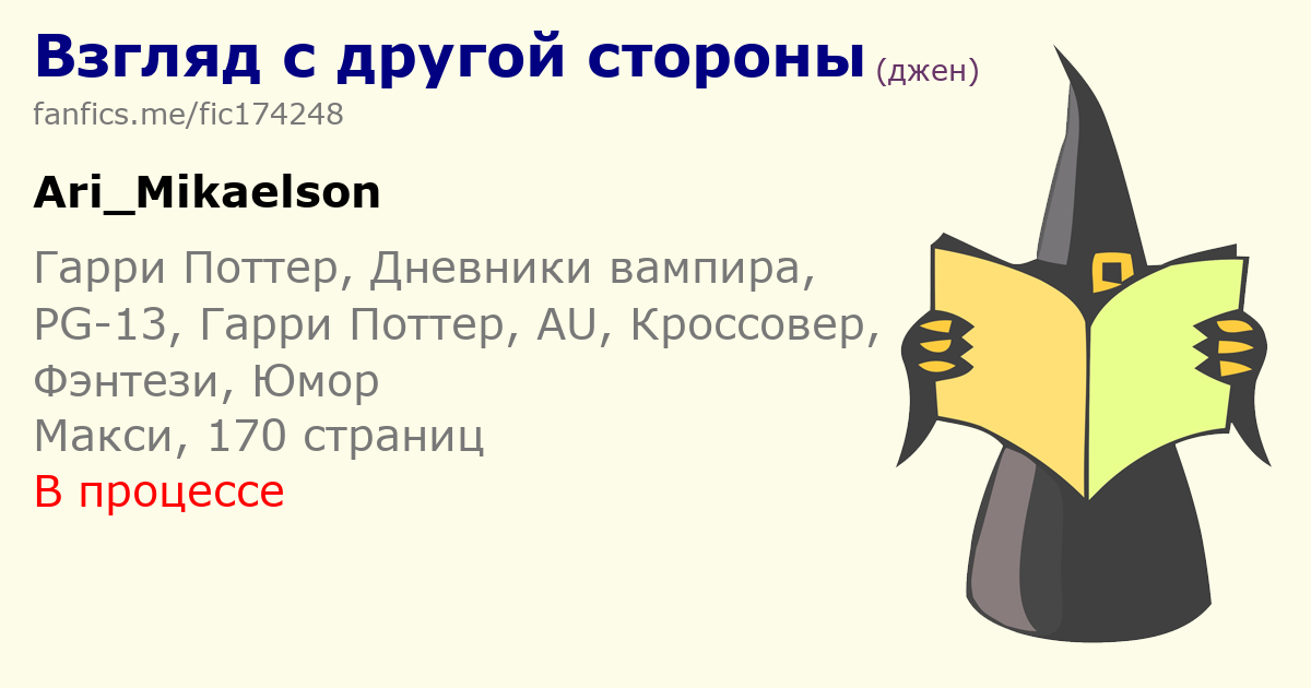 Семейная мелодрама о воссоединении древней семьи вампиров оборотней и магов. Гарри случайно попадает в семью и становится стержнем объедения,получив в виде плюшек и знания и семью и любовь. Секса и боёв нет,все по семейному.. минусом увы заморозка, на самом начале действий в Хогвартсе..